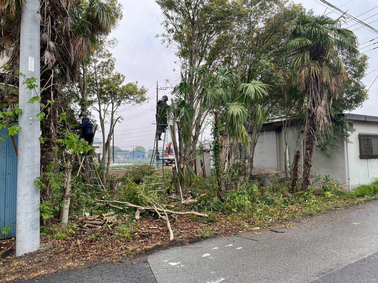 今回は、道路に面していたので通行車両に注意しながら、伐採をしていきました。
